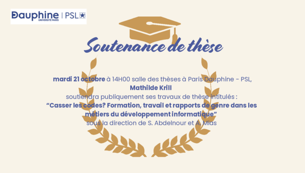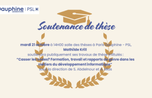 Lire la suiteMardi 21 octobre à 14H00 salle des thèses à Paris Dauphine - PSL, Mathilde Krill soutiendra publiquement ses travaux de thèse intitulés : (...)