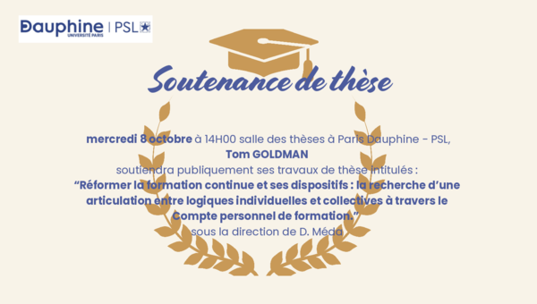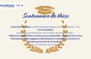 Lire la suiteMardi 21 octobre à 14H30 salle des thèses à Paris Dauphine - PSL, Mathilde Krill soutiendra publiquement ses travaux de thèse intitulés : (...)